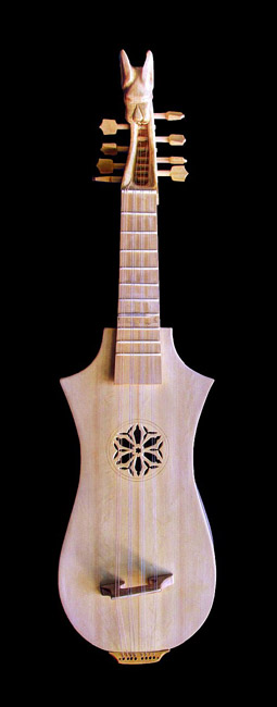 O braço é longo e a cabeça entalhada com cinco cordas que se tocam com palheta ou com os dedos. Foi um instrumento associado à música popular em oposição ao alaúde e mais tarde à viola.