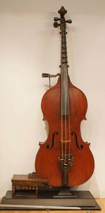Conta com três cordas e é essencialmente uma versão maior do contrabaixo - o espécime na coleção do Musée de la Musique em Paris mede 3,48 metros de comprimento, enquanto que o tamanho de