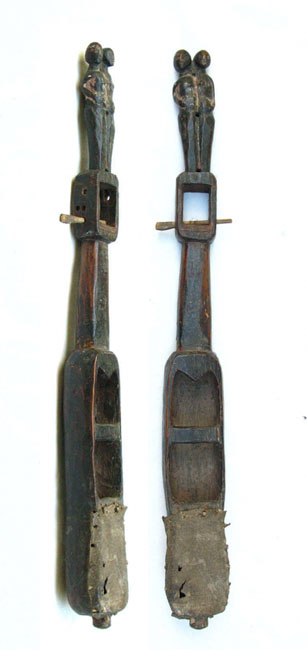 A sua construção é feita numa única peça de madeira sendo a parte inferior revestida com pele de animal.