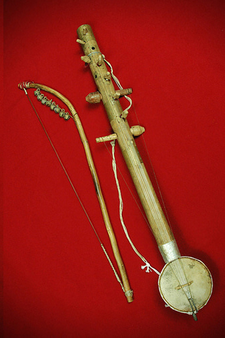 Utilizada para acompanhar danças e canções tribais, as duas cordas principais são tocadas com arco enquanto as restantes cordas, mais baixas, fornecem a ressonância típica dos instrumentos indianos.