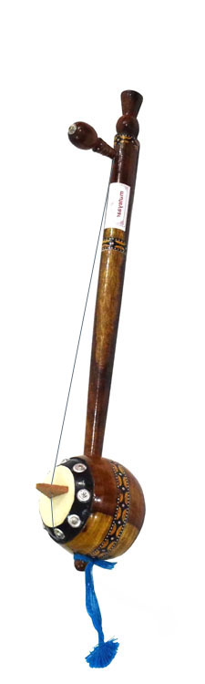 O instrumento é feito de uma vara de madeira montada numa cabaça que é seu corpo. Uma única corda metálica passa pela ponte apoiada no tampo de pele e amarrada a uma chave de afinação na ponta da vara.