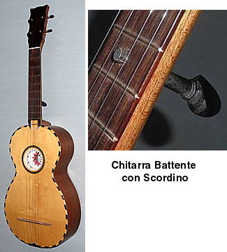 Na região da Calábria há um outro tipo especial de Chitarra Battente, a Chitarra Battente con Scordino (fora de sintonia).