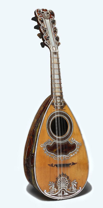 A partir desse instrumento surgiria o Bandolim (Mandolin em italiano, palavra que é o diminutivo de Mandola), tocado com a utilização de palhetas feitas de casco de tartaruga ou penas de aves e tendo cordas feitas de tripas de animais afinadas em Sol, Ré, Lá, Mi.