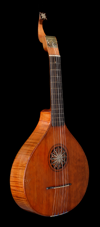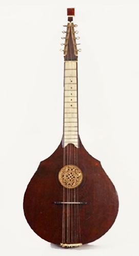 O instrumento tem corpo em forma de pera, base plana e braço curto e está relacionado com a Guitarra portuguesa e a Waldzither alemã.
